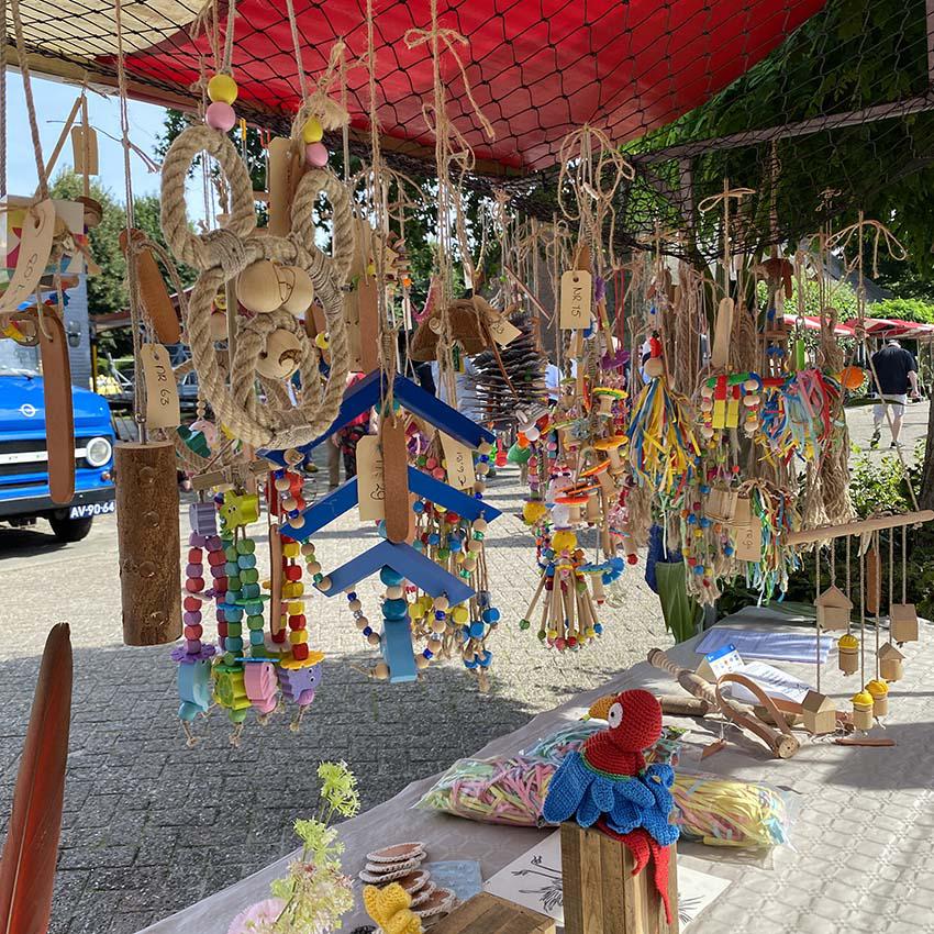 Uiteraard zijn wij ook zeer verheugd dat er weer veel mensen iets leuks in onze stand kochten om hun gevederde vriendjes, die thuis op hen zaten te wachten, mee te verrassen. Wij vervaardigen al ons speelgoed met heel veel liefde en adviseren graag over welk item een goede keuze zou zijn voor iedere specifieke vogel, daarom vinden wij het ook zo leuk om naast het runnen van onze webshop een aantal keer per jaar ergens live op een evenement aanwezig te zijn.