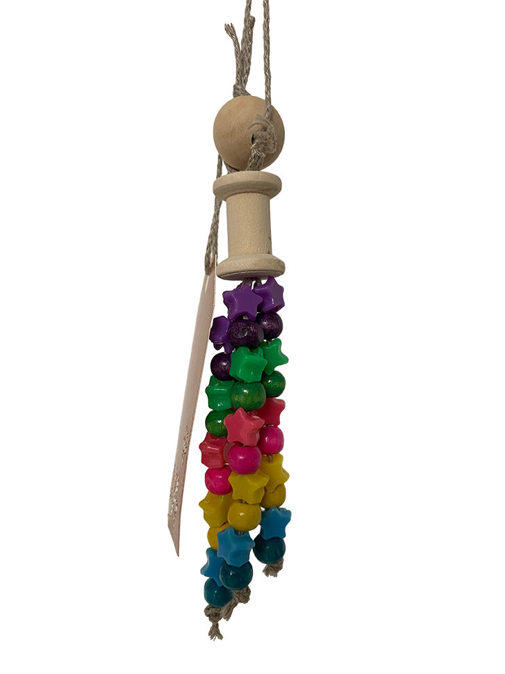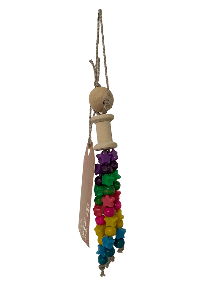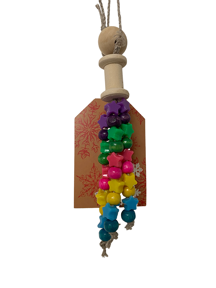 Laat de nacht schitteren in de kooi met Starry Night! Dit magische kerstspeeltje is geïnspireerd op de fonkelende sterrenhemel en speciaal ontworpen voor nieuwsgierige snavels die graag ontdekken, trekken en rammelen. Gemaakt van fel gekleurde acrylen sterren nodigt Starry Night uit tot spel en avontuur. Elke vogel kan zijn energie kwijt en tegelijkertijd genieten van de visuele prikkels die dit fonkelende speeltje biedt. Starry Night brengt beweging, glans en een beetje kerstmagie in de kooi. Perfect voor papegaaien die van verkennen, spelen en fonkelende kerstdetails houden.
